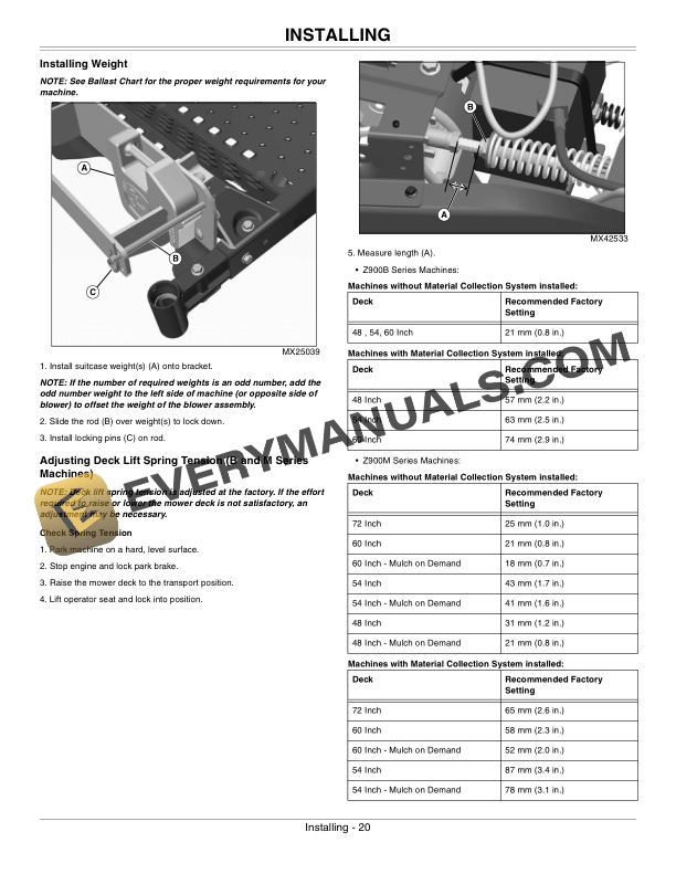 - 1.6.7. Adjusting Deck Lift Spring Tension (B and M Series Machines)