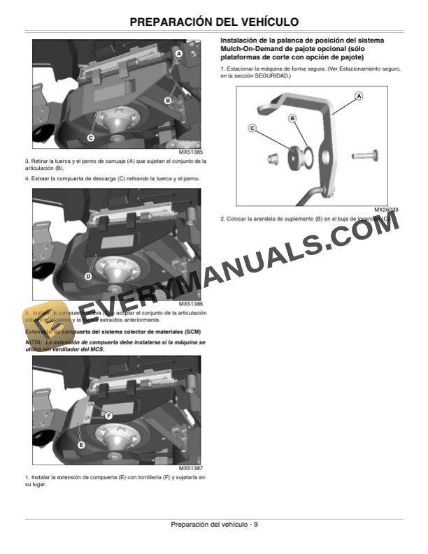 - 2.5.8. Instalaci?n de la palanca de posici?n del sistema MulchOnDemand de pajote opcional (s?lo plataf…