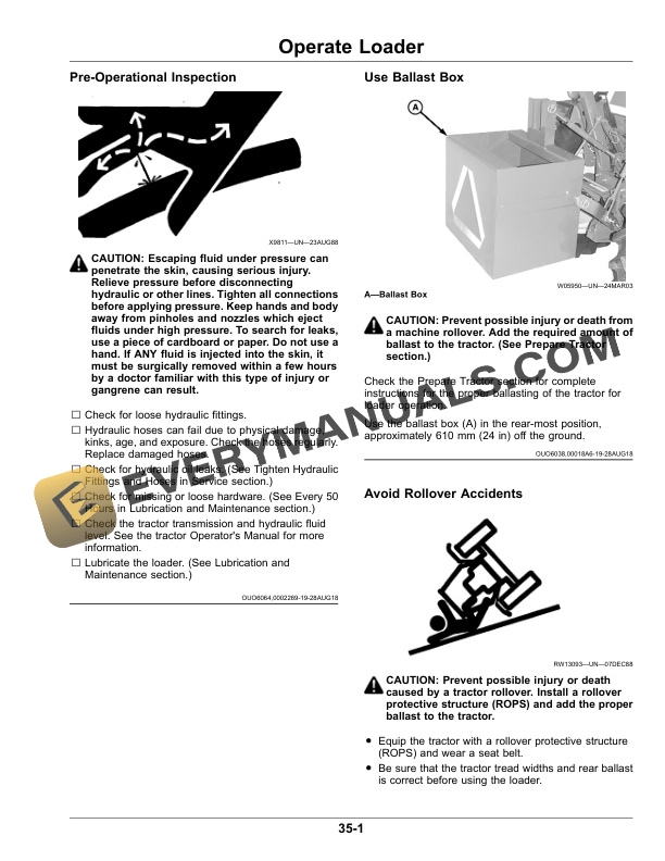 - 10.1. Service Loader and/or Tractor Safely (Loader Attached)