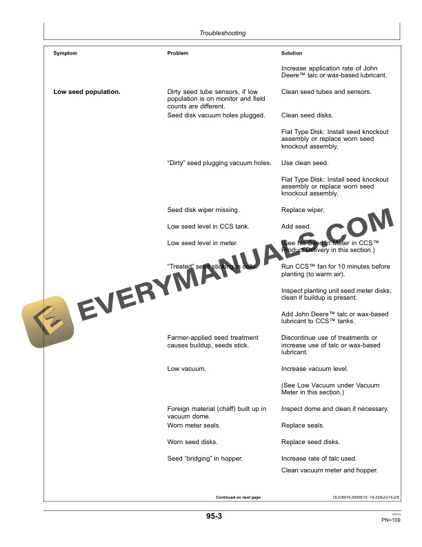 - 1.9.8. Operating CCS SystemHeavily Treated Seed or Large Seed Corn
