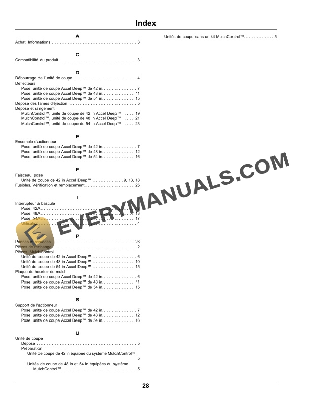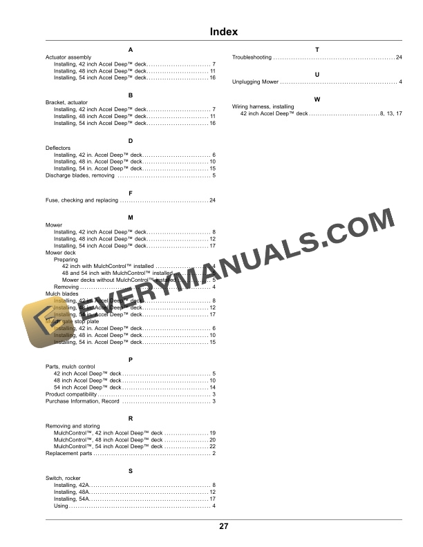 John Deere Electric MulchControl From Seat Kit For 42 Inch to 54 Inch Accel Deep Mower Decks Operator Manual OMUC22012