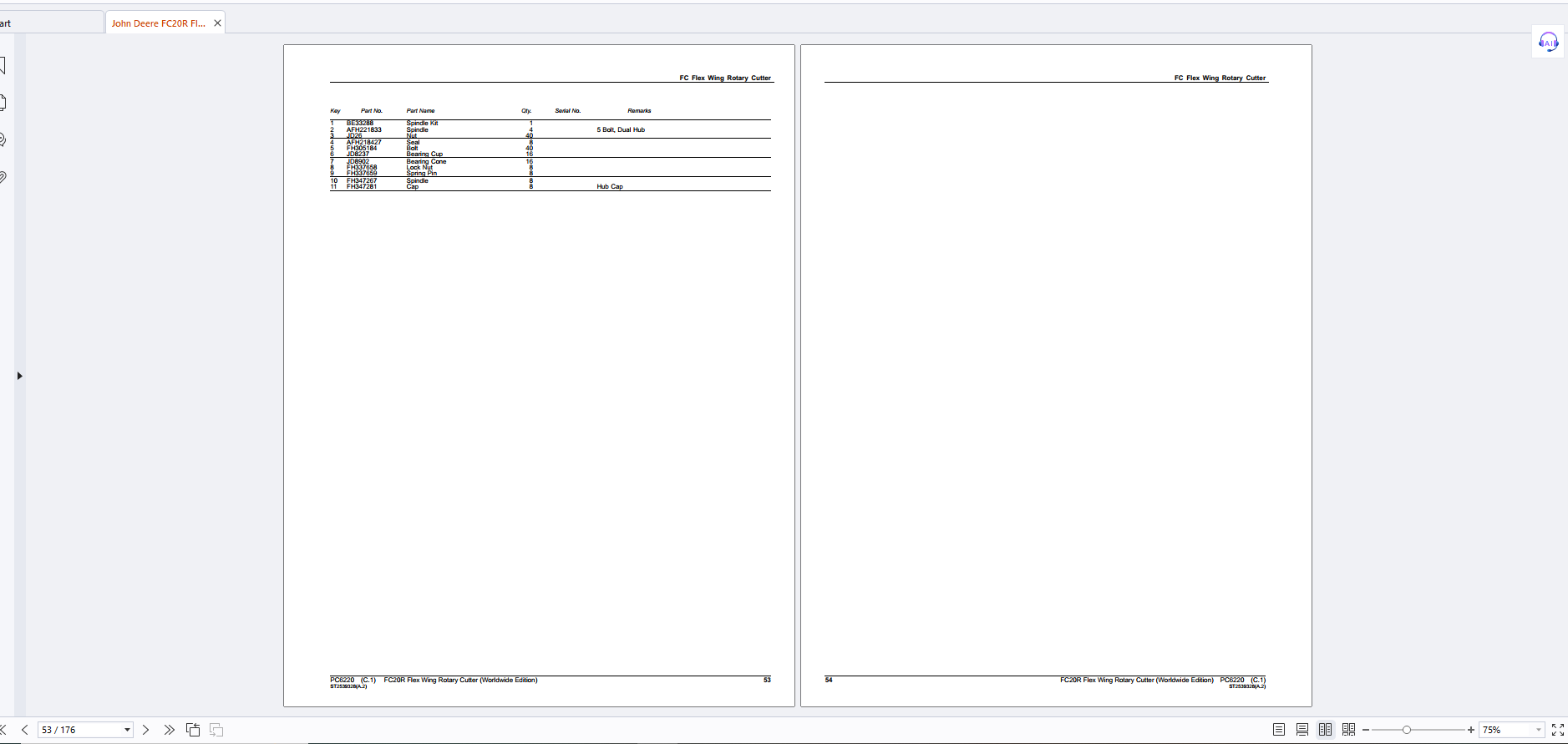 John Deere FC20R Flex Wing Rotary Cutter Worldwide Edition Parts Catalog PC6220 PDF