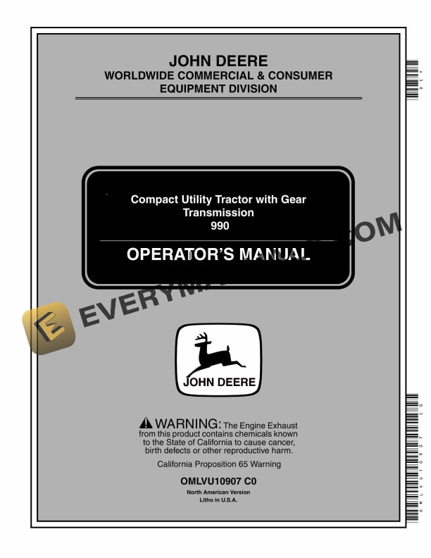 John Deere 990 Compact Utility Tractors with Gear Transmission Operator Manual OMLVU10907