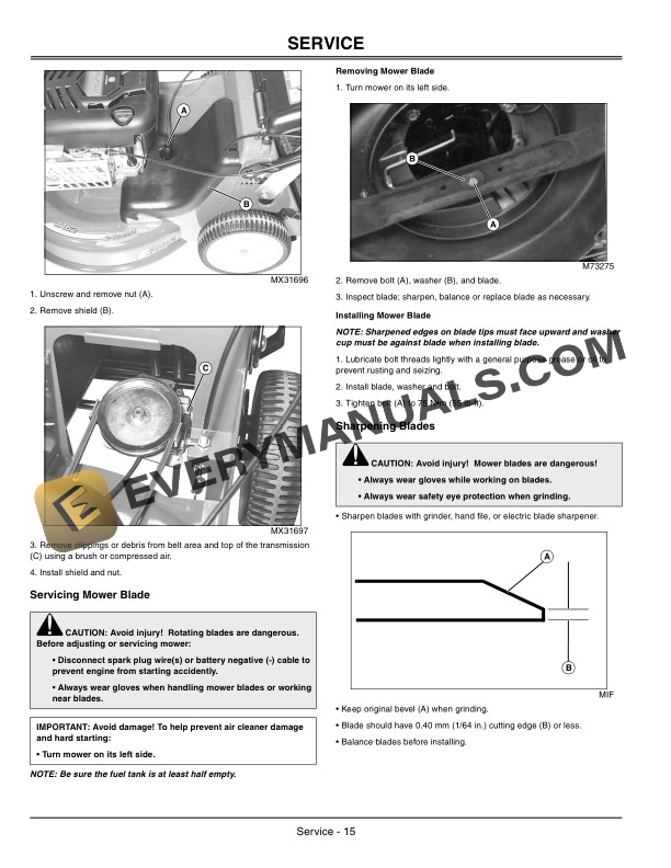 John Deere JA62 Walk-Behind Rotary Mowers Operator Manual OMGX22219