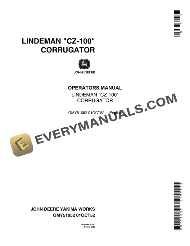 John Deere Lindeman CZ-100 Corrugator Operator Manual OMY51052