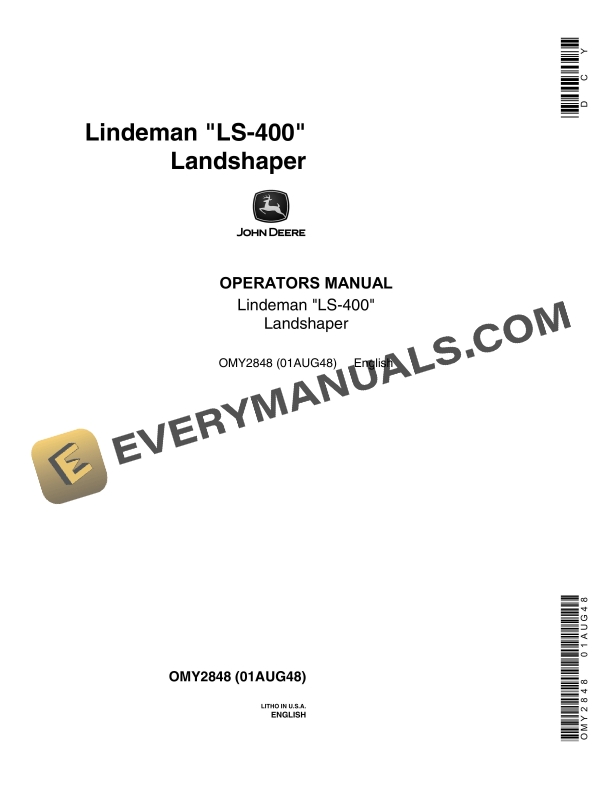 John Deere Lindeman LS-400 Landshaper Operator Manual OMY2848