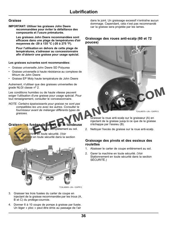 John Deere 60, 62, 72-Inch Mower Decks For Front Mount Mower Operator Manual OMTCU28182