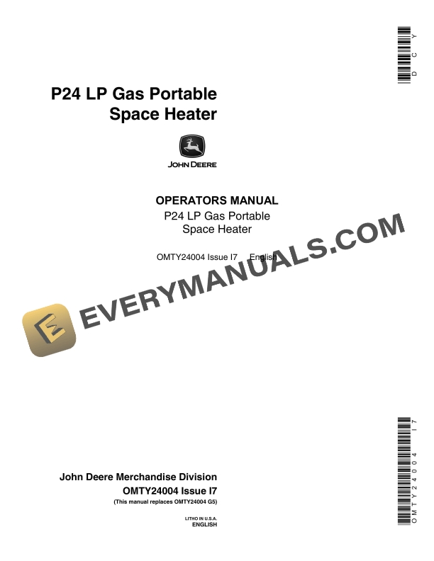 John Deere P24 LP Gas Portable Space Heater Operator Manual OMTY24004