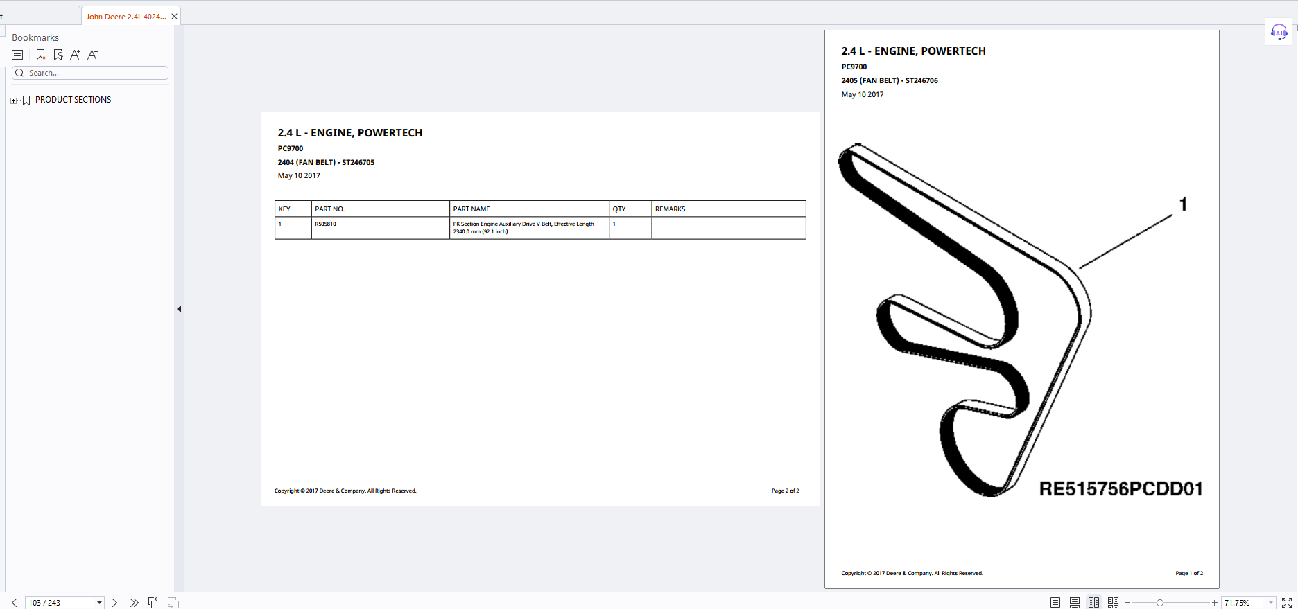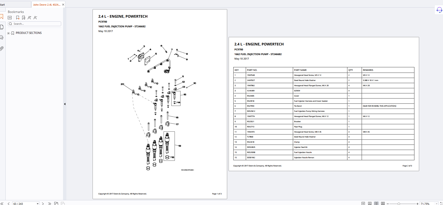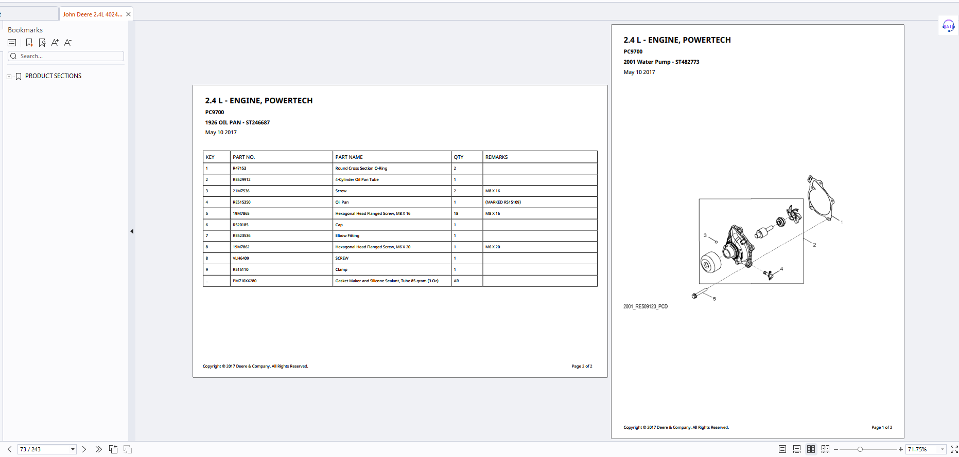 John Deere POWERTECH E 2.4L 4024HF285 OEM ENGINE Parts Catalog PC9700 11JAN23