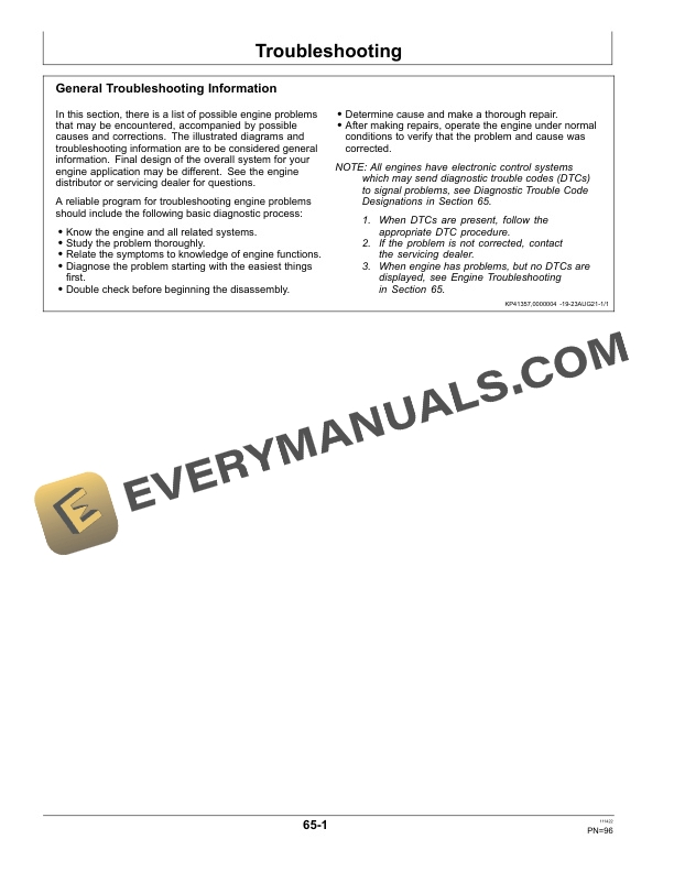 - 1.1.1. Record Engine Serial and Model Number