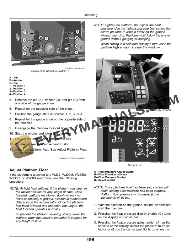 - 8.9. Adjust Platform Float