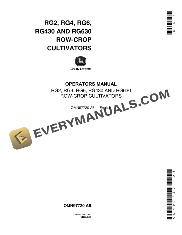John Deere RG2, RG4, RG6, RG430 and RG630 Row-Crop Cultivator Operator Manual OMN97720