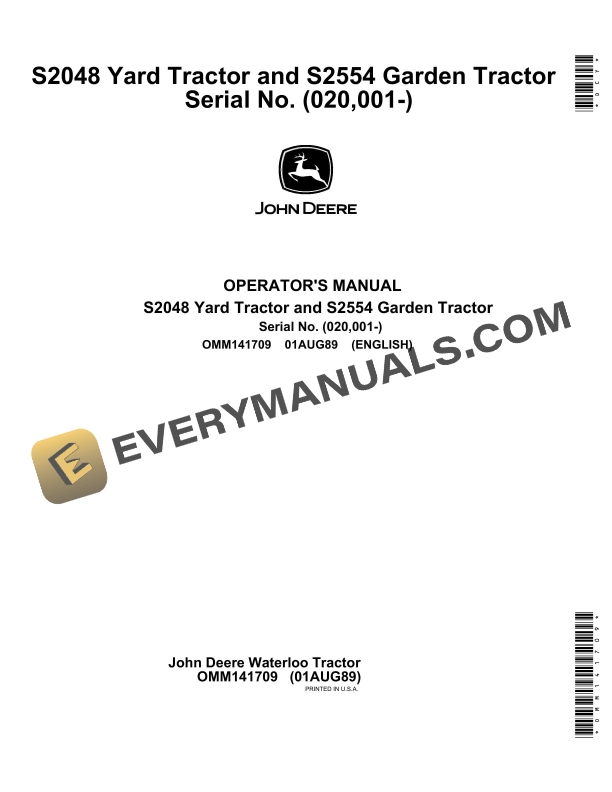 John Deere S2048 Yard Tractor and S2554 Garden Tractor Operator Manual OMM141709