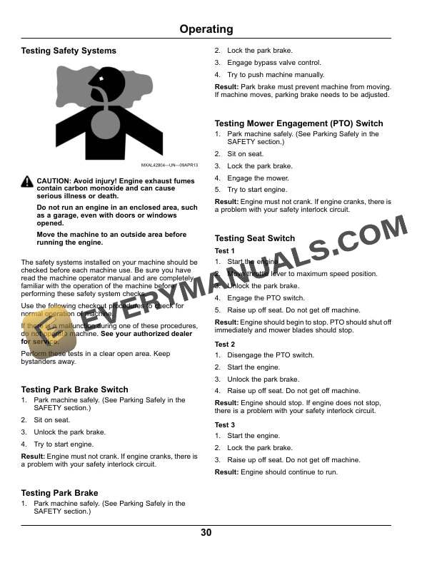 - 8.10. Testing Mower Engagement (PTO) Switch
