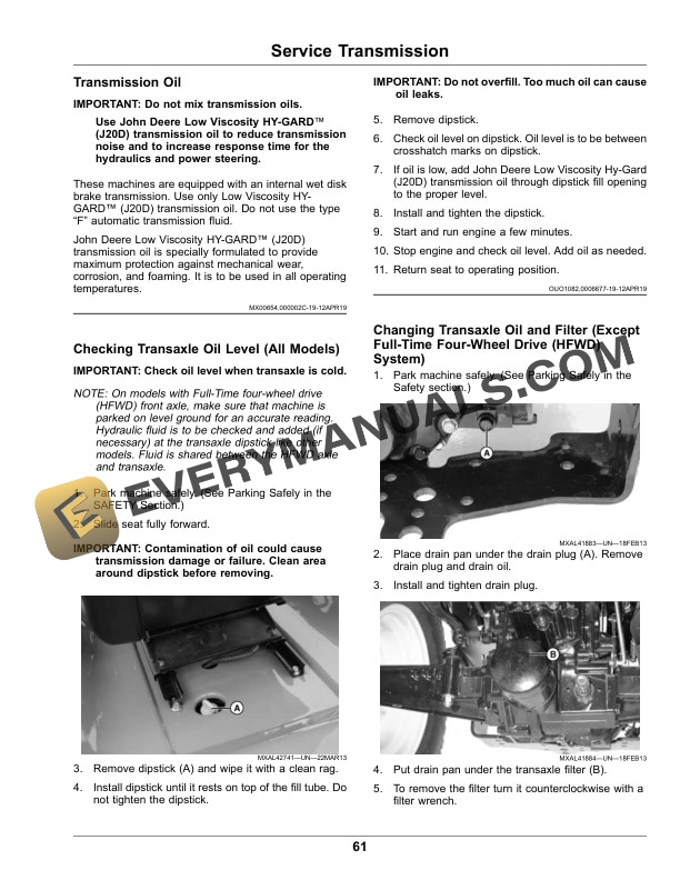 - 13.4. Changing HFWD System Hydraulic Oil and Filter (Transaxle and HFWD Front Axle)