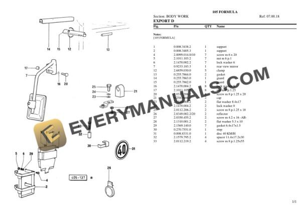 Lamborghini 105 FORMULA Tractor Parts Catalog PDF