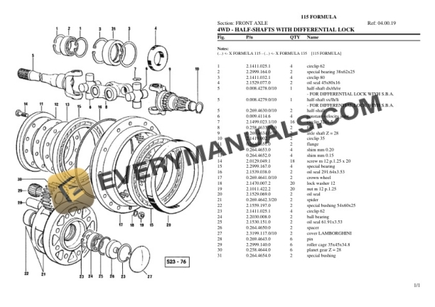 Lamborghini 115 FORMULA Tractor Parts Catalog PDF
