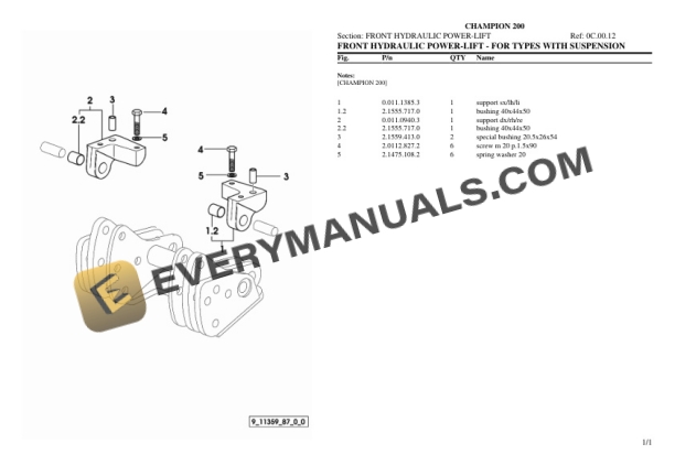 Lamborghini CHAMPION 200 Tractor Parts Catalog PDF