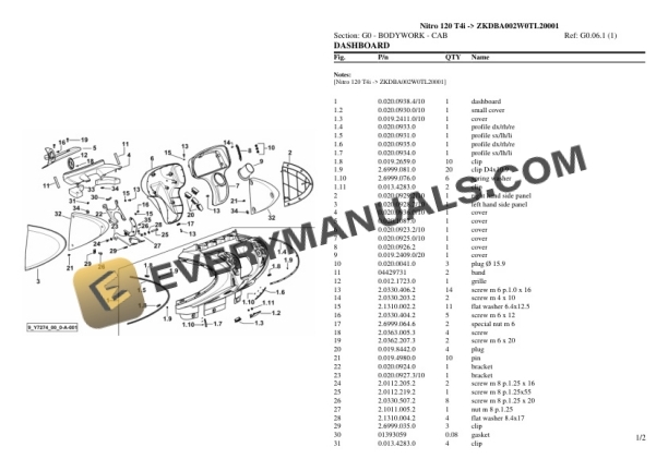 Lamborghini Nitro 120 T4i (ZKDBA002W0TL20001) Tractor Parts Catalog PDF