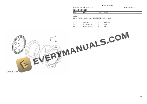 Lamborghini R3 85 T (1001) Tractor Parts Catalog PDF