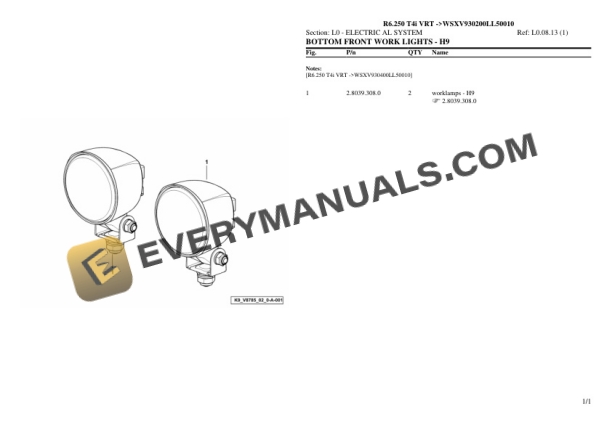 Lamborghini R6.250 T4i VRT (WSXV930200LL50010) Tractor Parts Catalog PDF