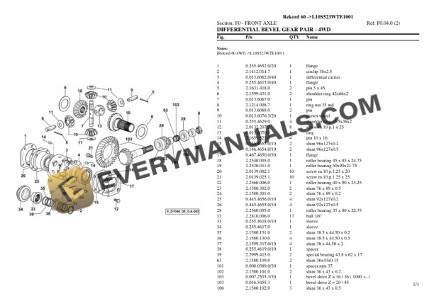 Lamborghini Rekord 60 (L10S523WTE1001) Tractor Parts Catalog PDF