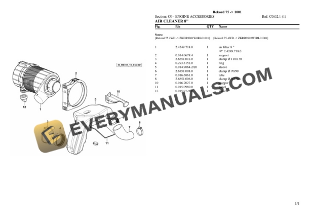 Lamborghini Rekord 75 (1001) Tractor Parts Catalog PDF
