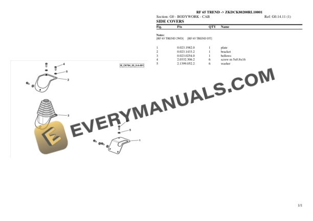 Lamborghini RF 65 TREND (ZKDCK80200RL10001) Tractor Parts Catalog PDF