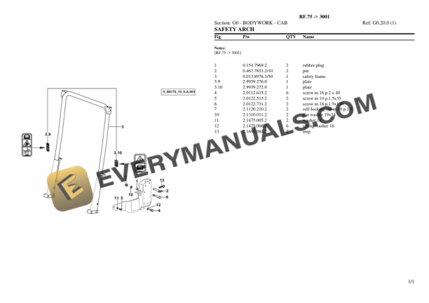 Lamborghini RF.75 (3001) Tractor Parts Catalog PDF