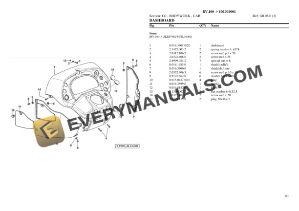 Lamborghini RV.100 (1001 10001) Tractor Parts Catalog PDF