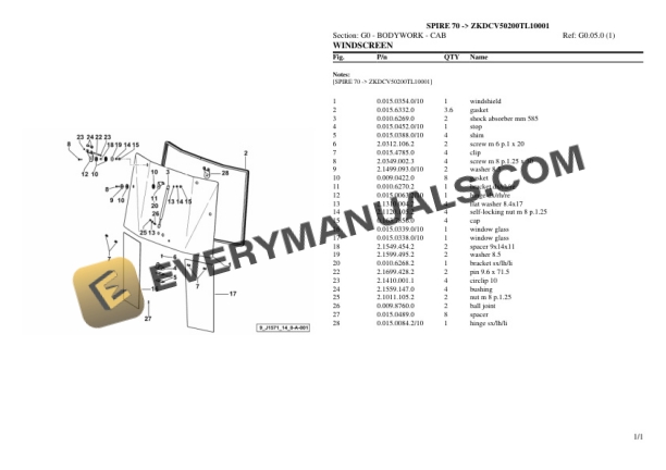 Lamborghini SPIRE 70 (ZKDCV50200TL10001) Tractor Parts Catalog PDF