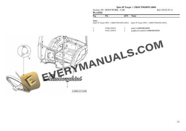 Lamborghini Spire 85 Target (ZKDCT90200TL10001) Tractor Parts Catalog PDF