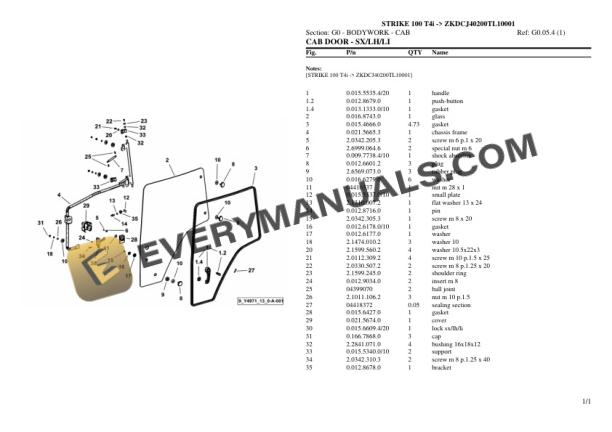 Lamborghini STRIKE 100 T4i (ZKDCJ40200TL10001) Tractor Parts Catalog PDF