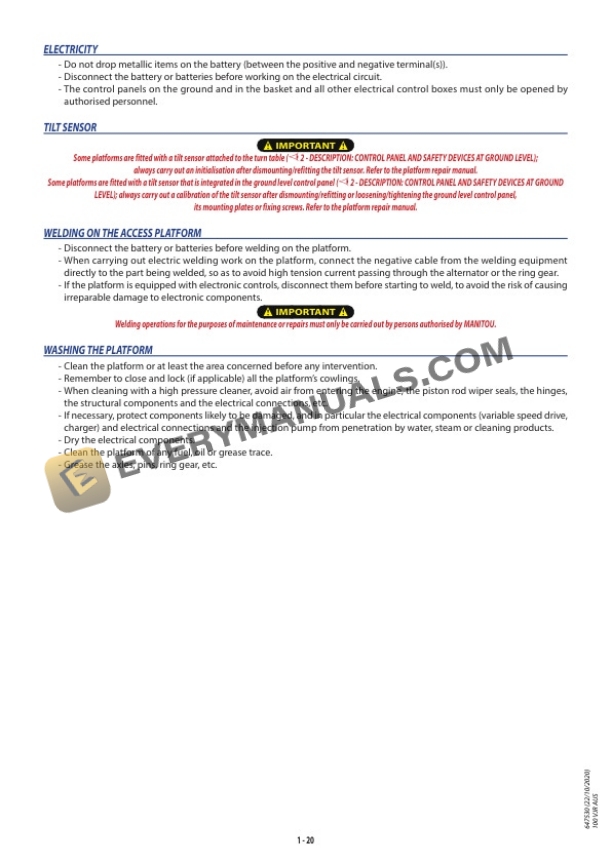 - 1.3. PLATFORM MAINTENANCE INSTRUCTIONS