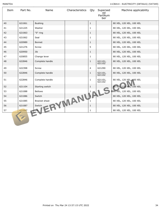 Manitou 100 XEL Parts Manual 547349
