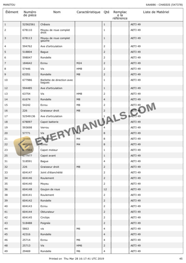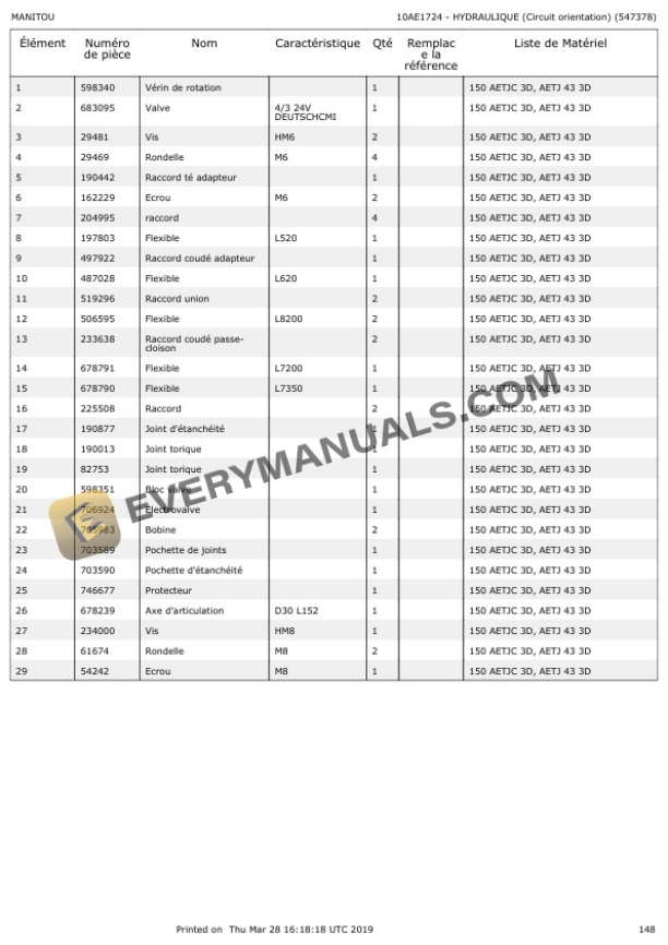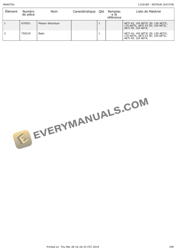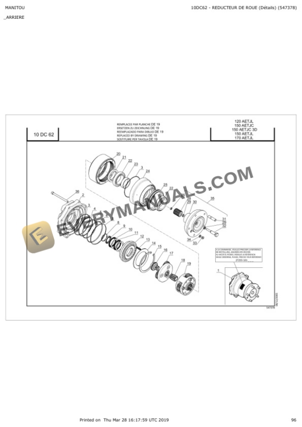 Manitou 120 AETJL, 150 AETJC, 150 AETJC 3D, 150 AETJL, 170 AETJL Parts Manual 547378