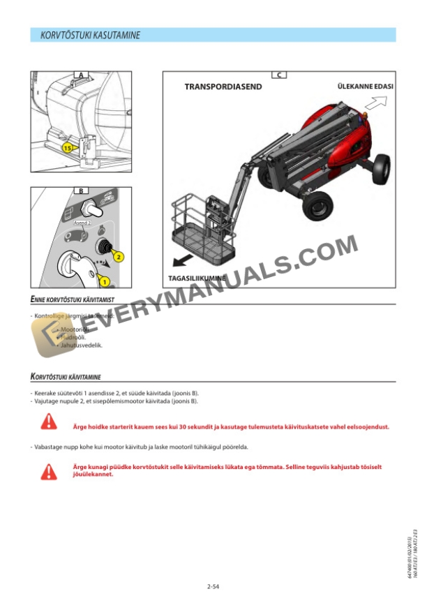 - 64. käikude vahetamise lüliti maapinnal või korvtõstukis