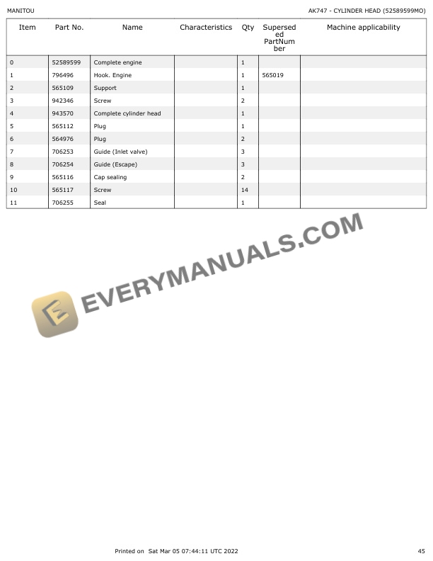 - 6.2.3. AK747 CYLINDER HEAD (52589599MO)
