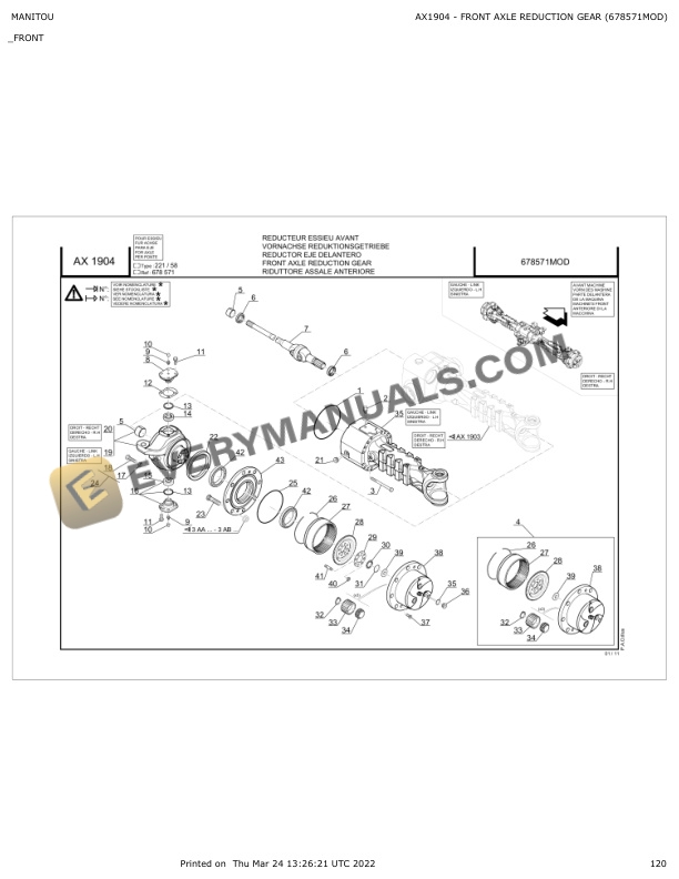 - 5.2.9. AX1904 FRONT AXLE REDUCTION GEAR (678571MOD)