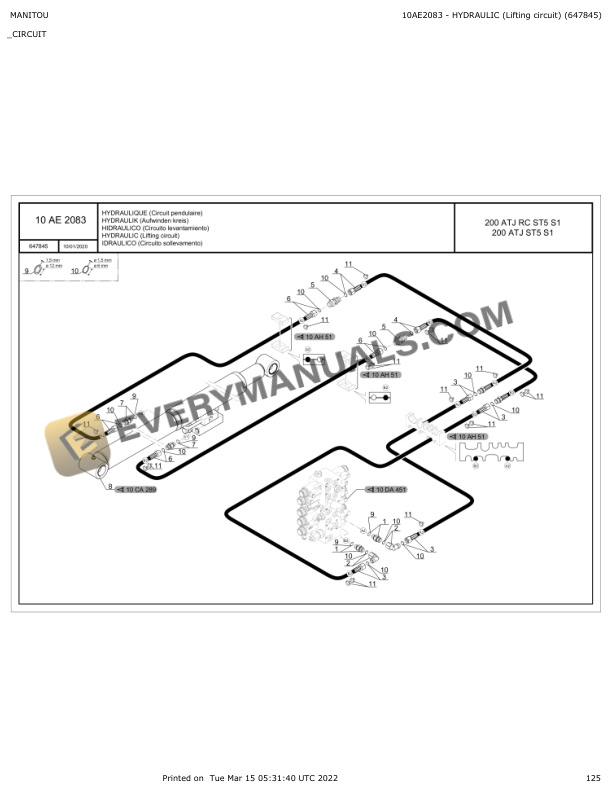 - 8.1.10. E2083 HYDRAULIC (Lifting circuit) (647845)