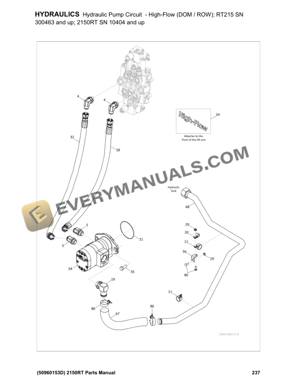 - 5.28. Hydraulic Pump Circuit HighFlow (DOM / ROW) RT215 SN 300463 and up 2150RT SN 10404 and up