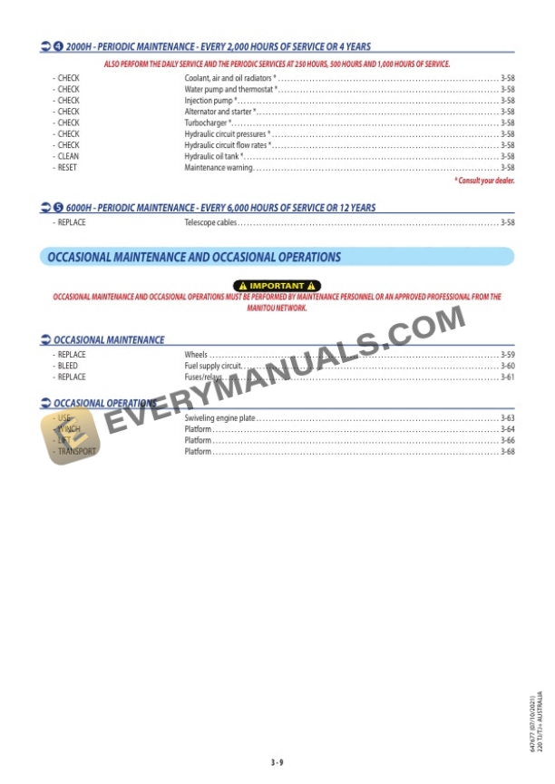 Manitou 220 TJ, 220 TJ- Australia Operator Manual 647677EN