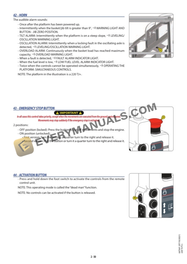 - 2.9. CONTROL PANEL AND SAFETY DEVICES IN THE BASKET