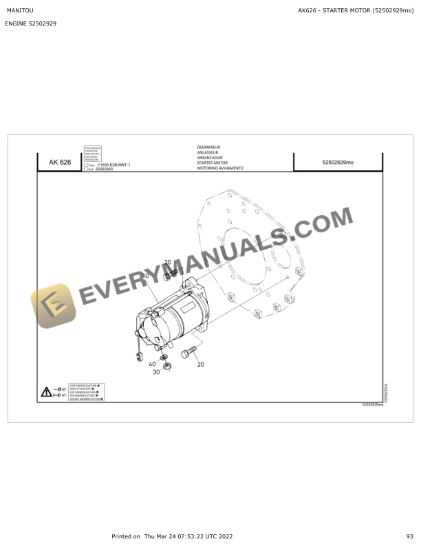 - 6.1.22. AK626 STARTER MOTOR (52502929mo)