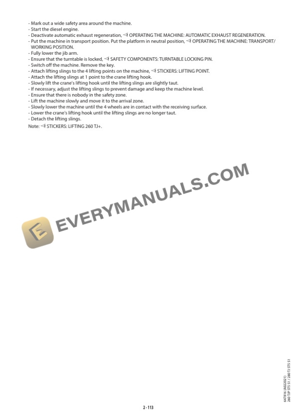 - 2.18.3. LIFTING INSTRUCTIONS 260 TJ
