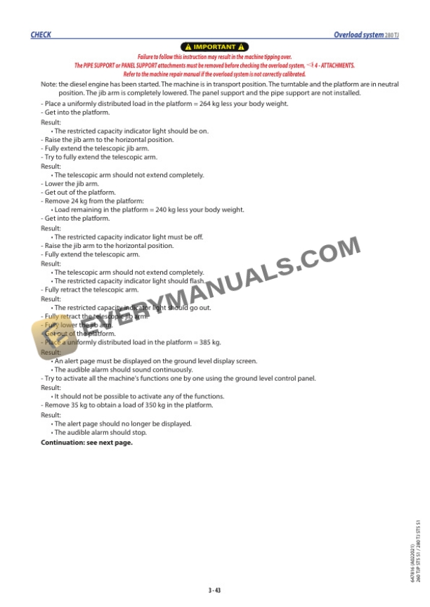 - 2.18.1.5. SECURING THE MACHINE 280 TJ
