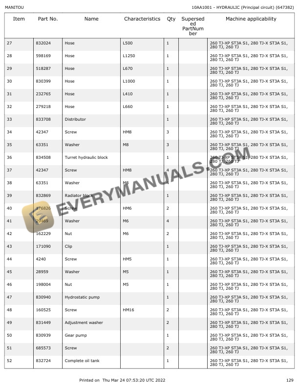 Manitou 280 TJ, 280 TJ-X ST3A S1 Parts Manual 647382