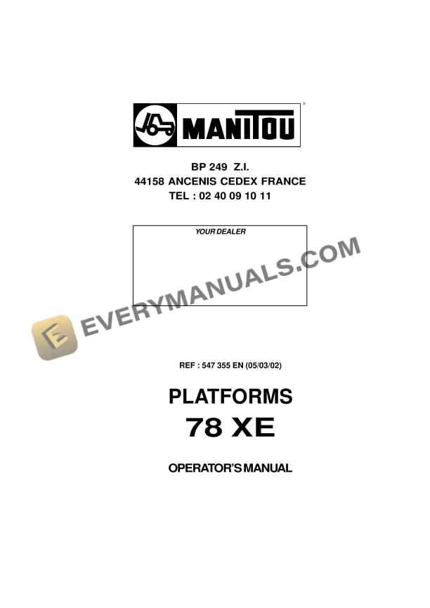 Manitou 78 XE Work Platforms Operator Manual 547355EN