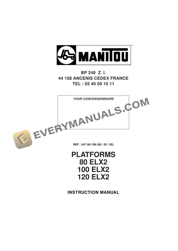 Manitou 80 ELX2, 100 ELX2, 120 ELX2 Platform Instructions Manual 547361EN