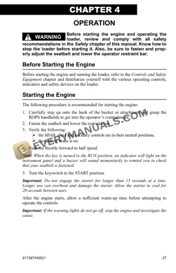 - 3.3.1. Before Starting the Engine